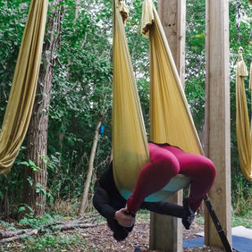Cassie offers weekly Aerial Yoga classes. 120min workshops with Qigong, Aerial Yoga, and Sound Healing are offered on select Sundays.